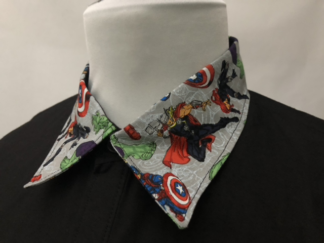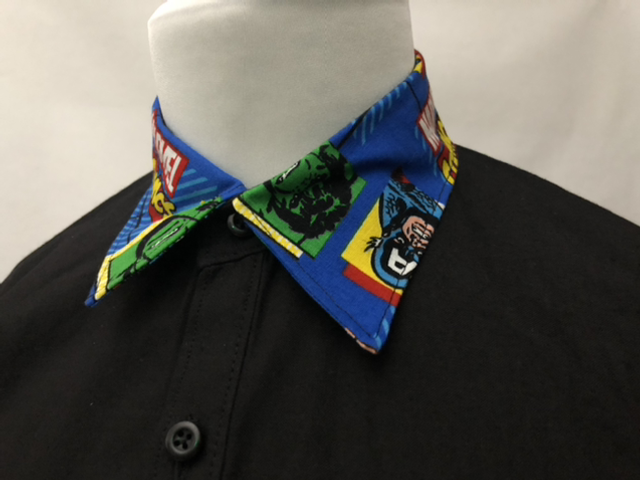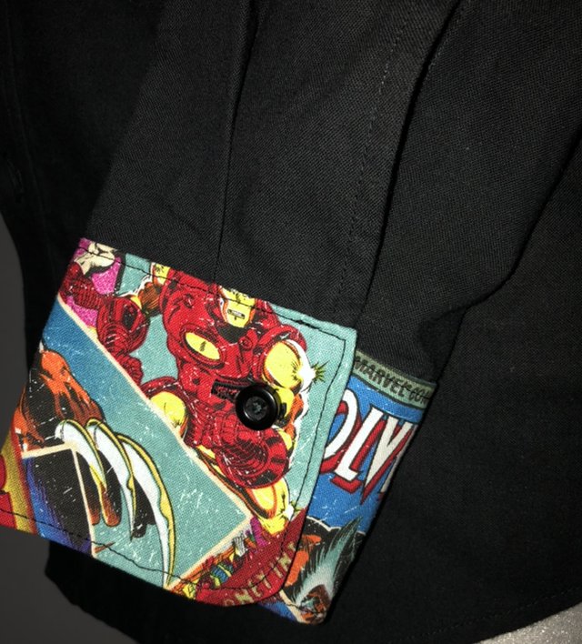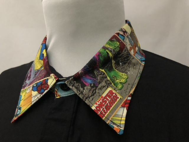 Finished with collar and cuffs in geeky fabrics (please contact for available fabrics including Marvel, DC Comics, DrWho, Star Wars, Harry Potter and many more)